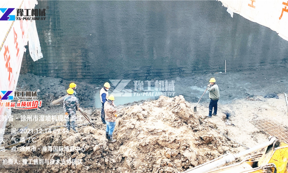 徐州奧體中心地鐵站項目,由中鐵十八局承建,此次訂購的液壓濕噴機(jī)主要用于地鐵基坑支護(hù)施工??蛻糁坝嗁彽霓D(zhuǎn)子式噴漿機(jī),因為工人反饋一直有堵管現(xiàn)象,影響工期,不得已重新訂購!為保證客戶工期不誤,工廠安排物流發(fā)專車連夜為客戶送貨。在與發(fā)貨部確認(rèn)設(shè)備到達(dá)的時間后,豫工售后與技術(shù)支持部工程師喬工乘高鐵從鄭州出發(fā),在設(shè)備送抵工地的第一時間趕到客戶工地——徐州中鐵十八局奧體中心地鐵站施工現(xiàn)場。作為對風(fēng)量、混凝土漿料要求很高的設(shè)備,試機(jī)過程中,液壓濕噴機(jī)采用骨料粒徑15mm,混凝土塌落度150-180的混凝土漿料,配合16/10型空壓機(jī),設(shè)備水平輸送距離輕松達(dá)到80米,垂直噴射距離達(dá)到50米,生產(chǎn)能力每小時7立方。