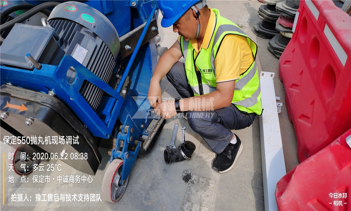 河北市政水泥道路拋丸工程,因?yàn)楣て诰o急,對(duì)路面拋丸機(jī)工作效率和能否滿足施工要求非常重視??蛻艄と舜蠖嗄赀^六旬,溝通有一定難度,豫工售后人員憑借專業(yè)技術(shù)水平,使工人盡快熟練操作設(shè)備操作步驟,解決客戶后顧之憂。2020年6月21日星期日,正在休息的毛工接到豫工售后與技術(shù)支持部的工作通知,河北保定客戶購買550型路面拋丸機(jī),因?yàn)楣て诰o急,必須盡快趕赴客戶工地安裝調(diào)試。到達(dá)工地后,毛工第一時(shí)間投入設(shè)備的安裝調(diào)試工作中去。 因?yàn)榭蛻艄さ毓と舜蠖嗄赀^六旬,增加了工作溝通和設(shè)備培訓(xùn)的難度。毛工耐心指導(dǎo),不斷重復(fù)培訓(xùn)工人操作步驟和注意事項(xiàng),直到工人熟練掌握,才放心離開!